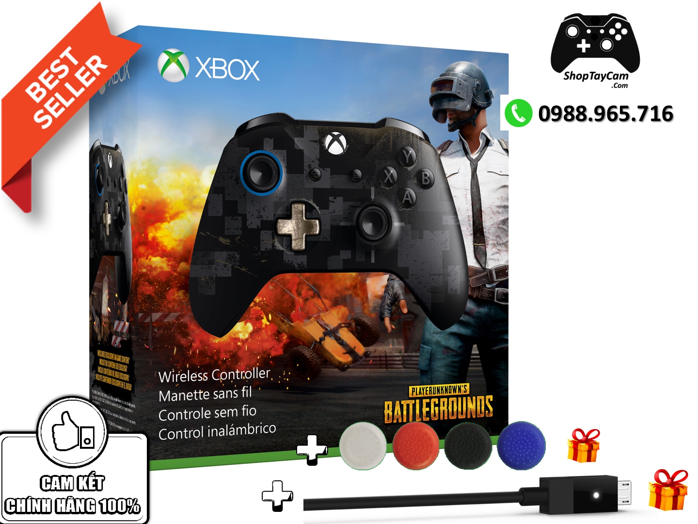 Tay Cầm Xbox One S Chính hãng màu Đen PUGB Limited Edition + Cáp USB tặng kèm + Bọc Cần Analog Chơi Game Tối Ưu Cho FO4 Fifa Online 4 / Fifa Online / cho PC | TOP BÁN CHẠY tại http://Shoptaycam.com
